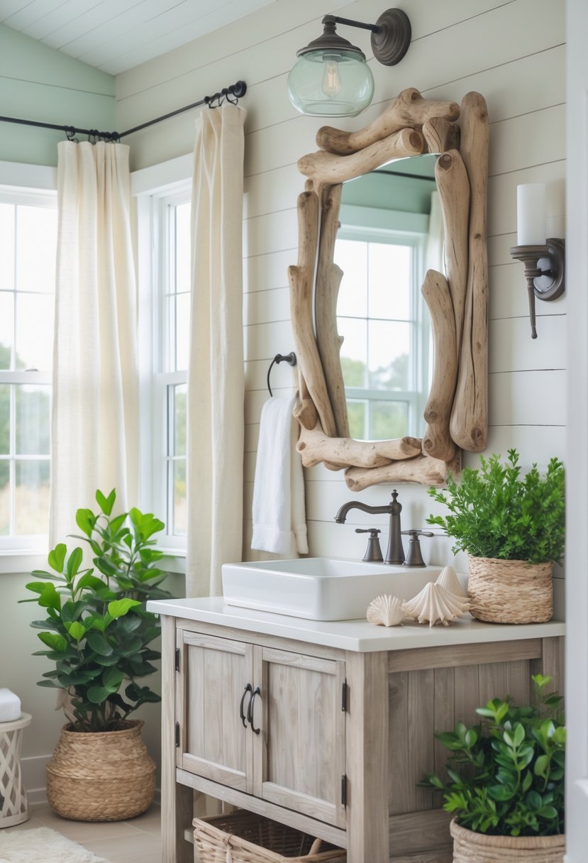 They also help create a relaxed atmosphere, making the bathroom feel more inviting and connected to nature. Driftwood frames offer a subtle but effective way to enhance a coastal style.