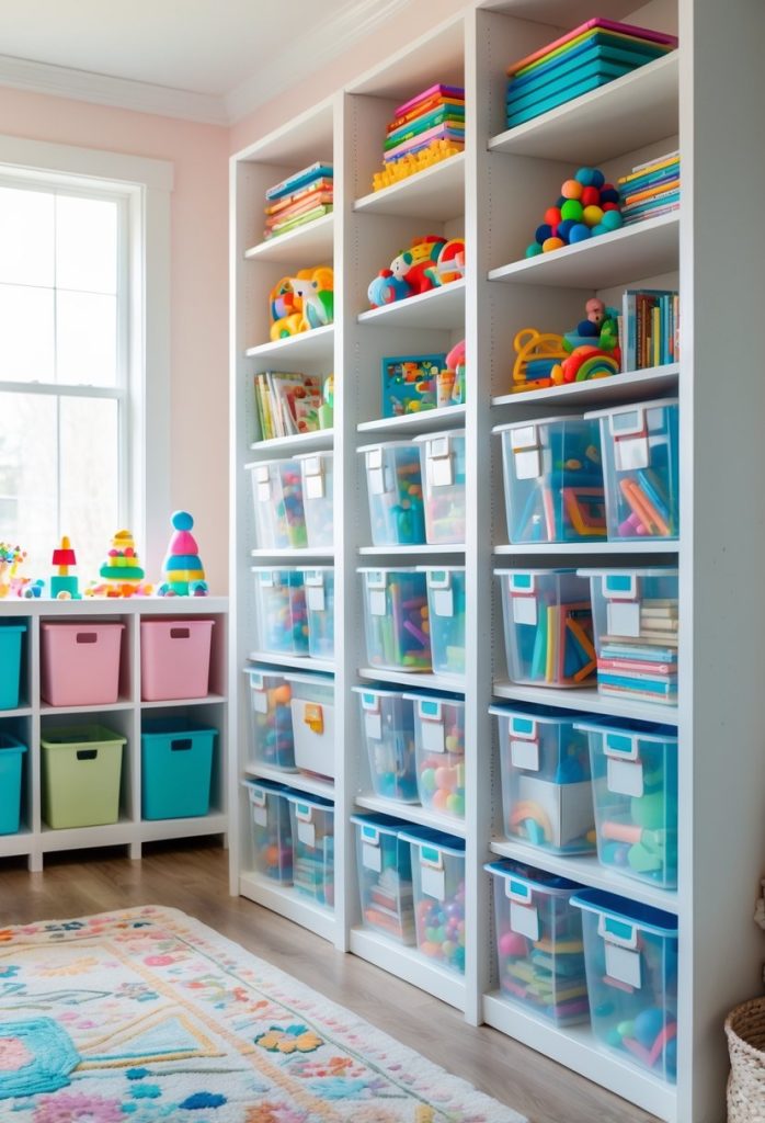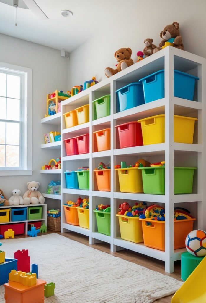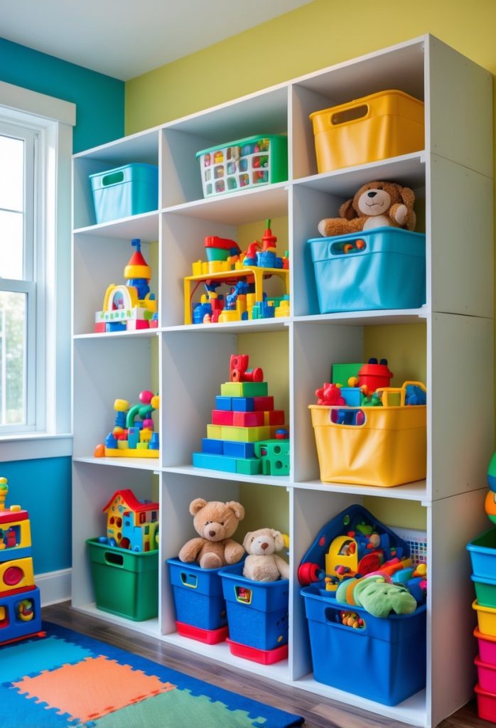 They work well for craft supplies, stuffed animals, and building sets. Choosing sturdy materials and easy-to-clean bins makes maintenance simple.