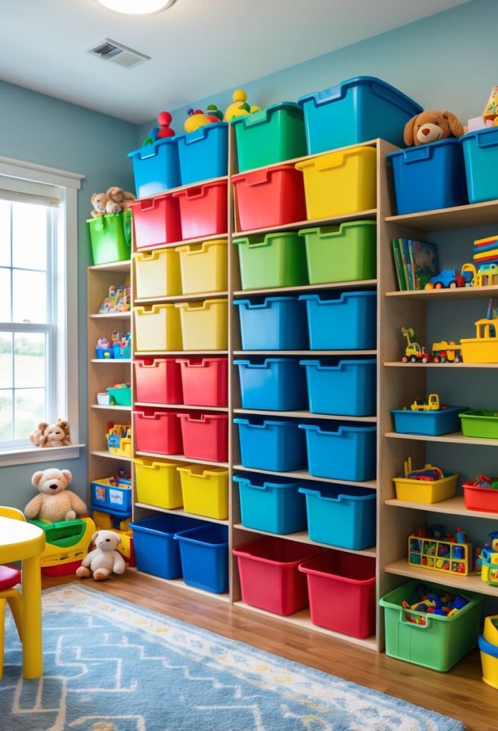 4) Color-Coded Toy Bins to Encourage Sorting
