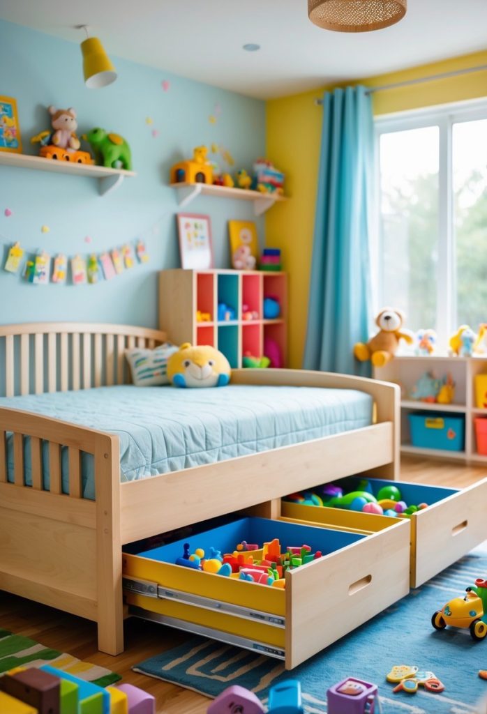 Rotate toys seasonally. Store off-season or rarely used items in labeled under-bed drawers to reduce clutter and keep favorites accessible.