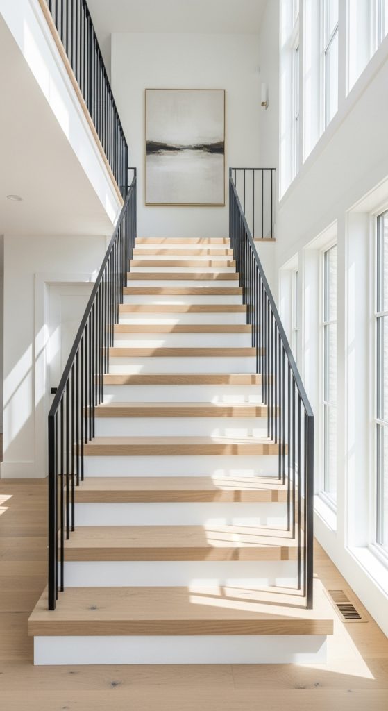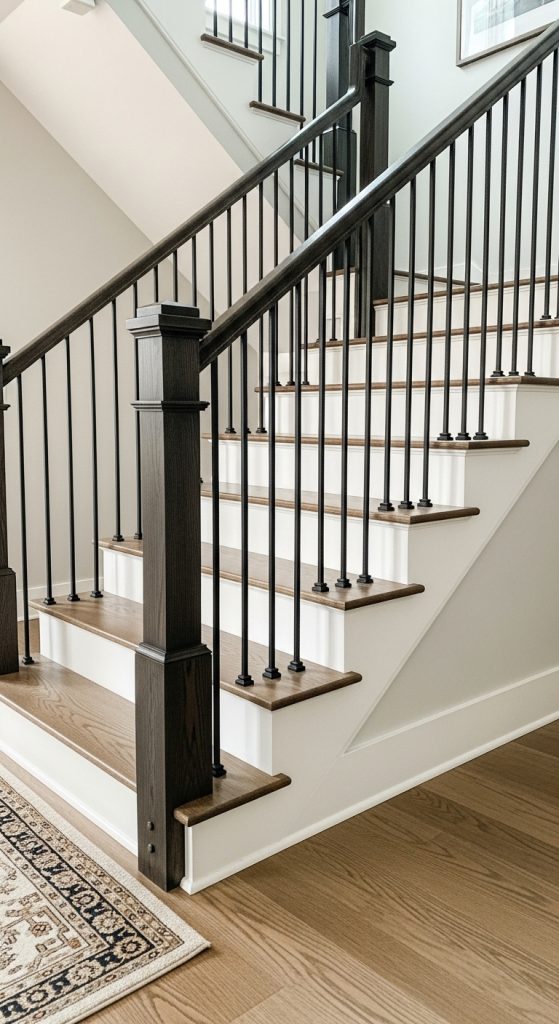 Pair them with matte black railings for a mix of vintage and industrial. This look works beautifully in modern farmhouse homes with open floor plans. Add a soft runner rug for comfort and texture.