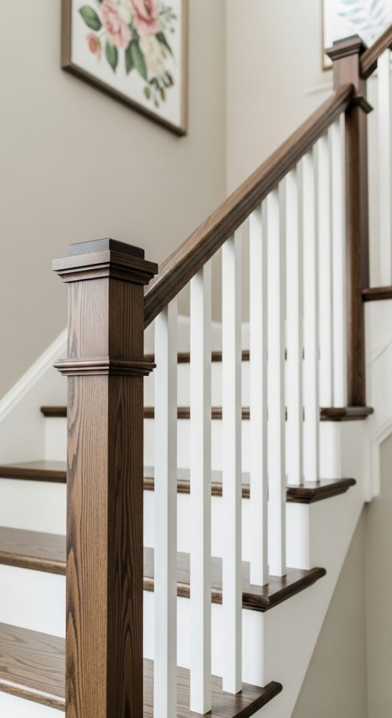 Paint it white or soft beige to keep it bright. It’s a great transition between your farmhouse entryway and your upstairs rooms.